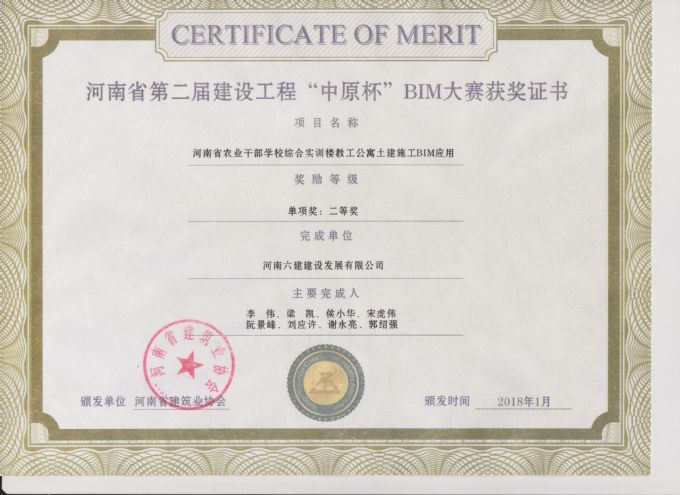 公司荣获河南省第二届建设工程“中原杯”BIM大赛二等奖