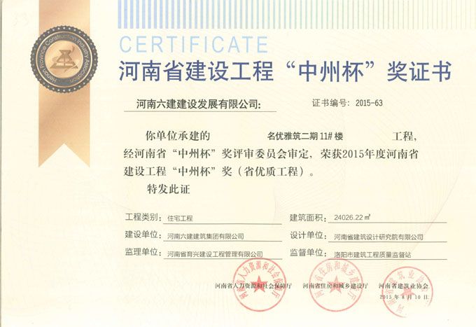 公司荣获河南省第二届建设工程
