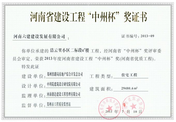 公司荣获河南省第二届建设工程